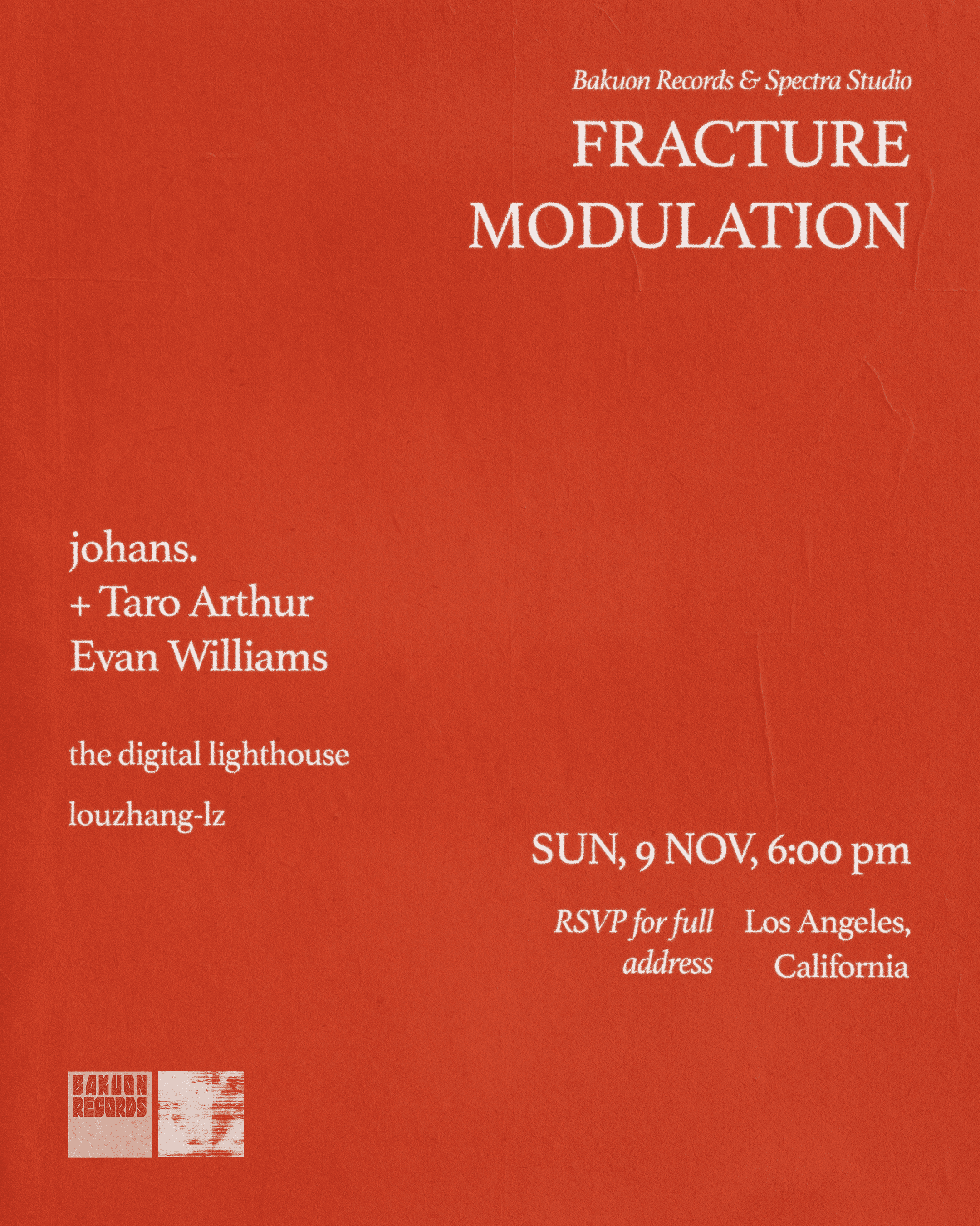 Designed brand identity for Bakuon Records. Inspired by the expressive type of manga to reflect the label's Japanese name and origins. Established two-tone contrast look to ensure brand compatibility with artist releases. Modular design elements (word mark + explosion) allow for extended branding applications. Also designed social assets for label-hosted events, ensuring brand consistency and visual clarity.